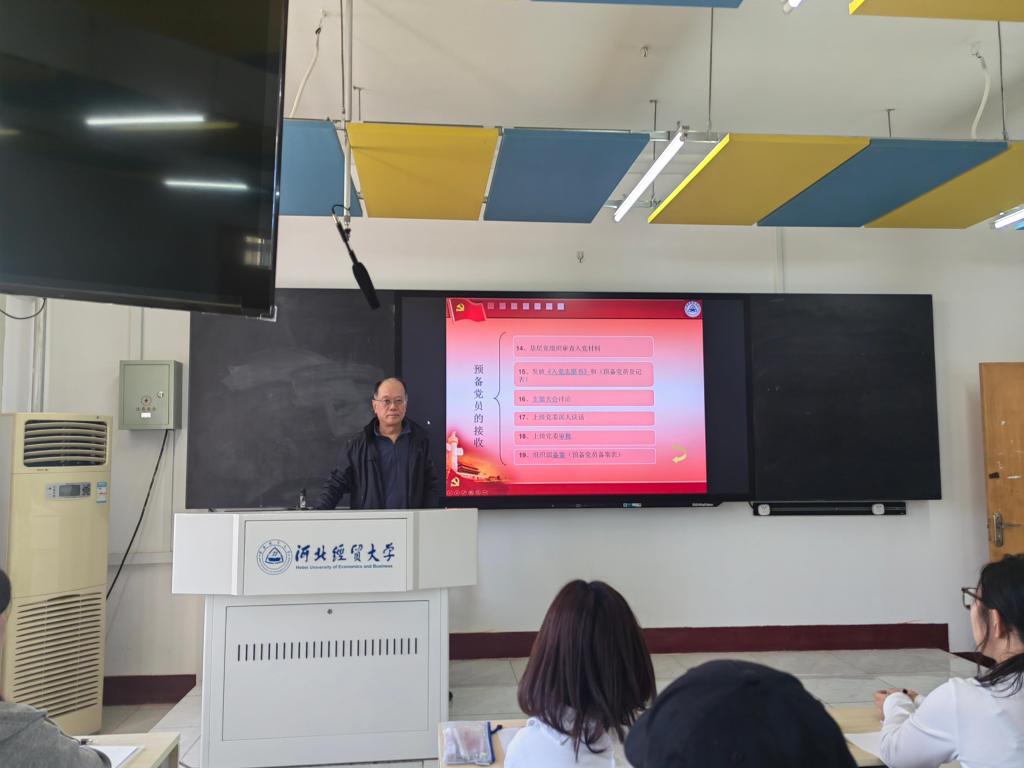 4月14日下午,77779193永利在四教 201 教室举行第 58 期入党积极分子培训开班仪式暨专题党课。本次培训以学习贯彻党的二十大、党的二十届二中、三中全会精神为主线,聚焦 “外语+党建”特色,通过理论与实践相结合的方式,为入党积极分子提供全面、系统的教育培训,旨在增强他们的政治意识、理论素养和实践能力,为党的事业培养更多优秀人才。活动由行政党支部书记田晓光主持,第二员工党支部书记康文霞和第58期全体入党积极分子参加。