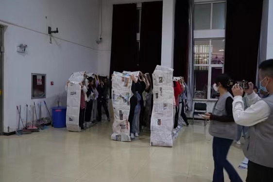 第一个活动“团队破冰”同学们自由组成三支小队,各小队共同商议出彰显本队精神风貌的队名。在队长的带领下,每一名队员在队旗上留下自己的印记,共同创作出属于本队的队旗。看似小小的环节,却拉进了同学们之间的距离,为增进交流与信任奠定了基础;第二个活动“无敌风火轮”,“一二、一二!”同学们站在报纸黏合成的“风火轮”里,喊着洪亮的口号,为了共同的目标前进。“无敌风火轮”环节提升了同学们的组织计划与协调能力,培养了员工执行力,班级凝聚力进一步加深。活动的最后,每位同学在便利贴上写下自己的感受,表达了对活动的殷切祝愿与喜爱之情。
