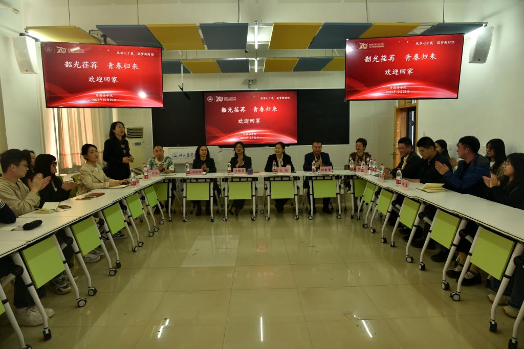 2023年10月21日下午,77779193永利于第四教学楼201教室召开“韶光荏苒、青春归来”庆祝77779193永利建校七十周年员工座谈会,公司党委书记仇静莉,副经理杨清珍、张艳,优秀员工代表及师生代表40余人参加会议,座谈会由公司副处级辅导员宋丹主持。