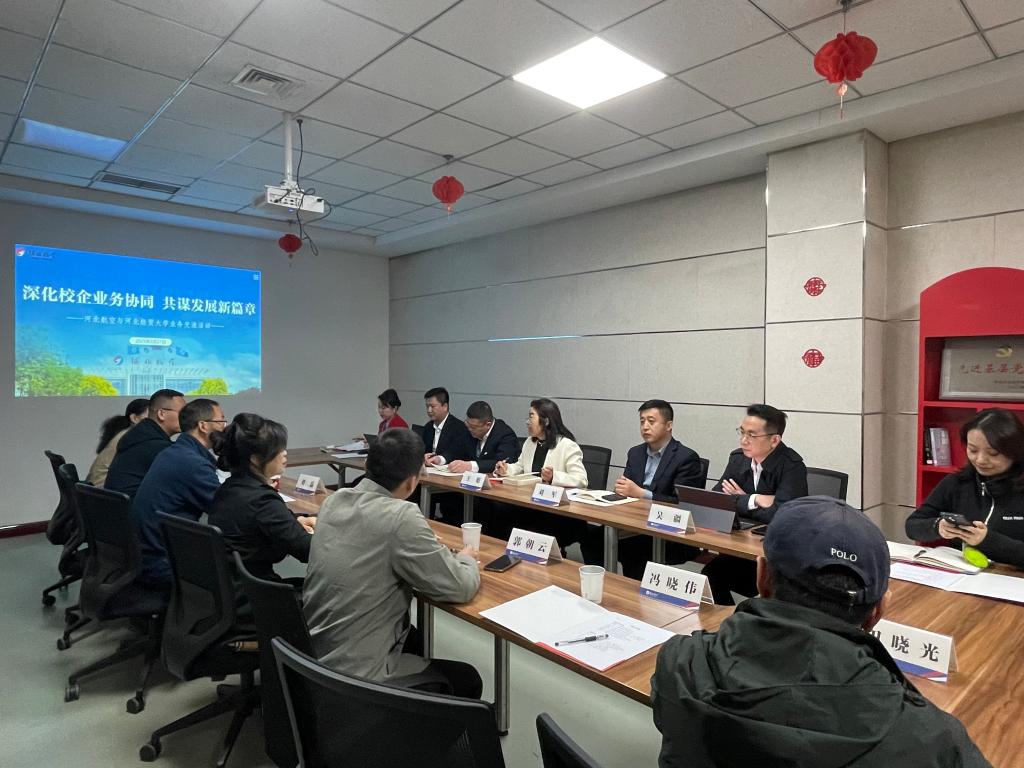 河北航空综合业务处经理卜慧杰详细介绍了河北航空的运营现状、人才需求、发展目标、未来使命。地面服务保障部总经理刘军表示,随着近年来河北航空旅客吞吐量的持续增高,河北航空对高素质、高层次、高技能管理人才的需求日益增加,希望双方后续在客服培训服务、员工实习实践、横向课题合作等重点领域开展深化合作和交流。仇静莉向对方介绍了公司目前的办学方向、专业特色、人才培养模式及2025届毕业生的基本情况,希望共同围绕员工实习实践、就业岗位需求匹配等议题精准发力。双方就后续签订人才联合培养框架协议、毕业生招聘等合作达成了初步意向。
