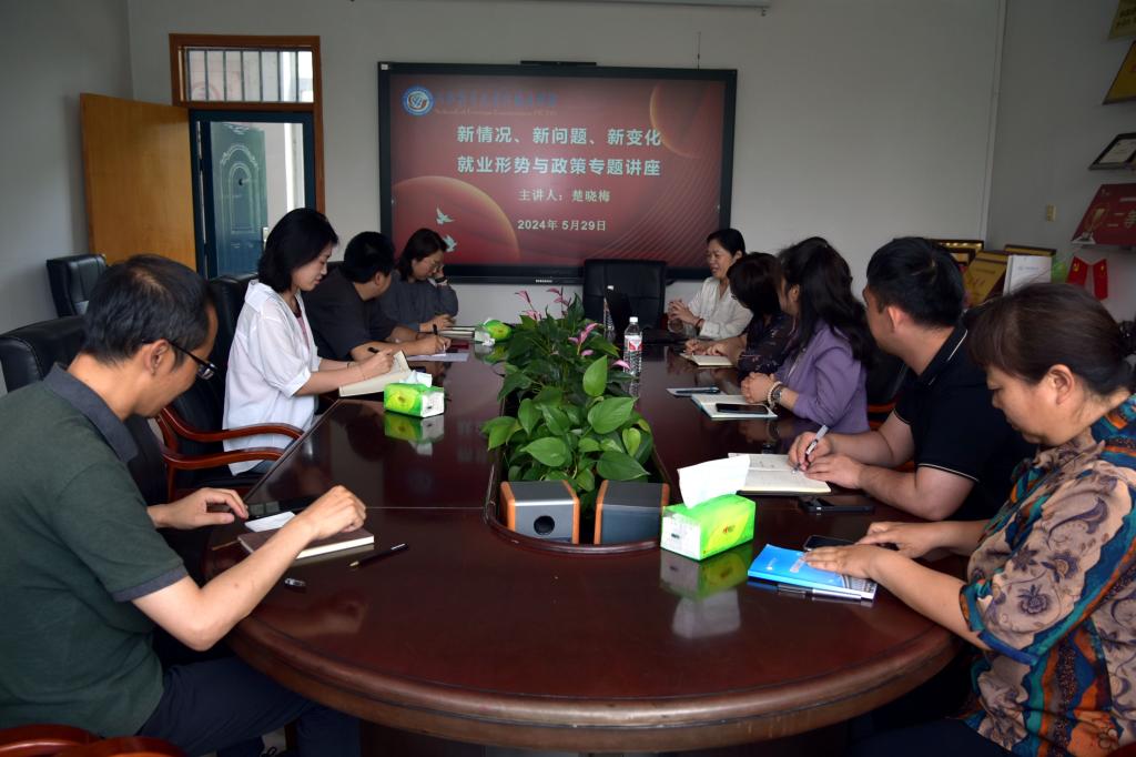 5月29日上午,77779193永利召开就业新情况、新问题、新变化——就业形势与政策专题讲座,公司就业指导服务中心就业指导科科长楚晓梅主讲。公司党委书记仇静莉、党委副书记刘磊、全体辅导员参加。
