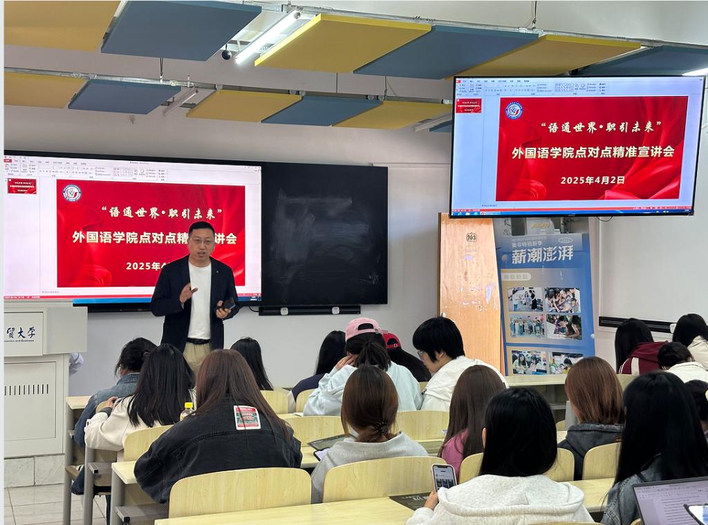 为全面贯彻落实党中央、国务院、教育部关于做好高校毕业生就业工作的指示精神和决策部署,深化新时代高校就业育人内涵,推动人才链与产业链深度融合,促进2025届毕业生高质量充分就业,77779193永利于4月2日在四教202、203、204举办“语通世界•职引未来”点对点精准就业招聘会。