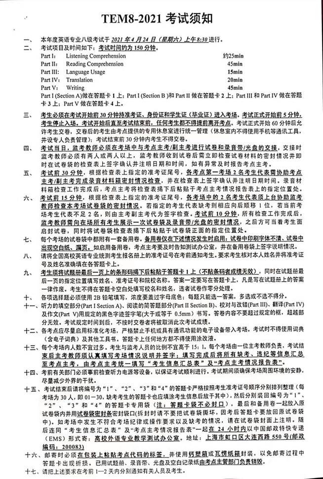 2021年英语专业八级考试防疫工作须知