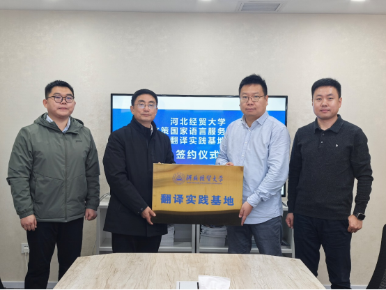 最后,双方签订协议,合作建设翻译实践基地并举行授牌仪式。此次校企合作挂牌仪式的顺利举行,标志着公司在凝聚校企力量、产教融合共赢等方面迈出了坚实的一步,为未来双方持续合作奠定了良好基础。