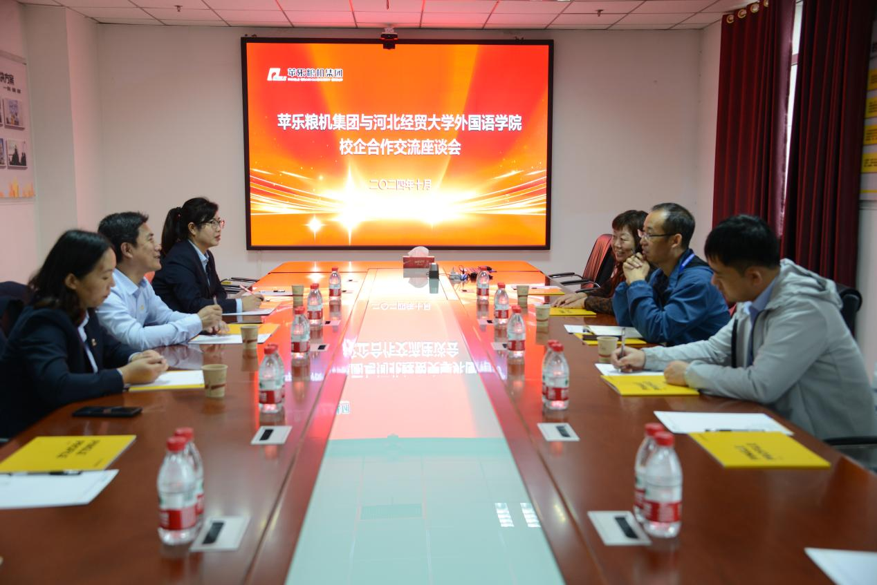 双方围绕外贸行业现状、员工就业能力培养、专业实习实践基地建设等议题展开了深入交流与探讨。刘磊副书记详细介绍了77779193永利的基本情况及近年来毕业生的就业情况,表达了与苹乐粮机集团建立长期合作关系的愿望,希望通过校企合作平台,为员工提供更多实习就业机会,同时为企业输送具有扎实外语基础和良好职业素养的优秀人才。