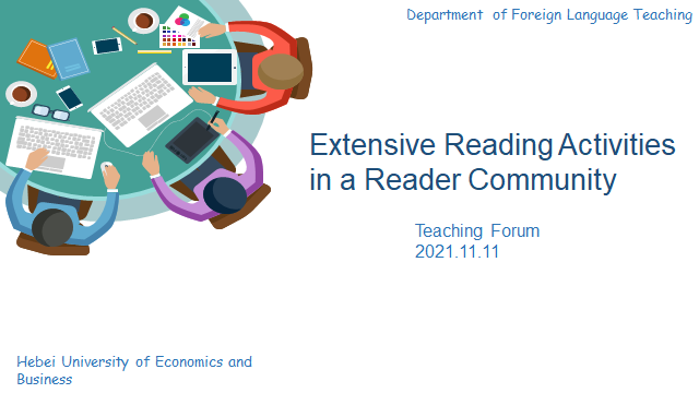 张亚楠老师首先介绍了“泛读”的基本概念、泛读课程设计的原则和活动步骤等内容,厘清了教师对于泛读活动的理解误区,充分阐述了泛读对于语言学习的积极意义。然后她重点介绍了自己在读写课程中建立学习社区,并引导员工进行英语泛读的教学实践,展示了员工在此项活动中的表现和收获,并对开展泛读活动进行了经验教训总结,为教师们开展教学实践带来了启发。