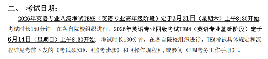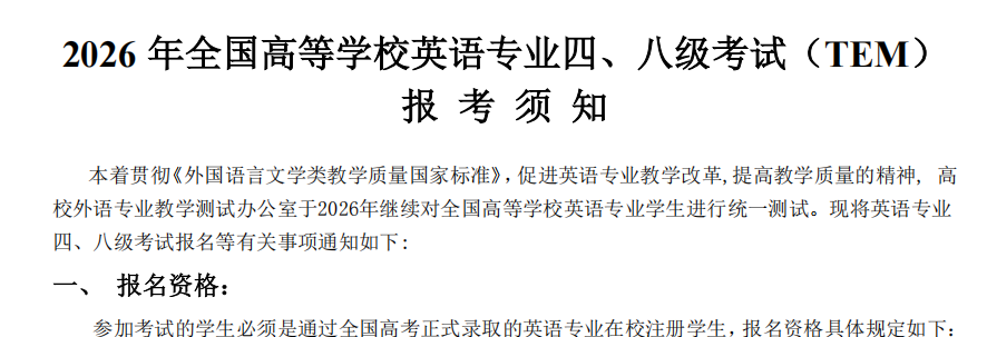2026年全国高等公司英语专业四级、八级考试报考须知